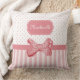 Girly Polka Dot Bow Cute Pink Stripes With Name Cushion