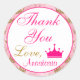 Girly Princess Hot Pink and Gold Glitter Thank You Classic Round Sticker