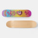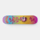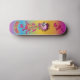 Cute pink skull with mohaw, guitar and hearts with GIRLY PUNK text on a colourful background.