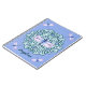 Girly and gorgeous personalised monogram name mandala dragonfly notebook. Features a soft blue mandala with four small blue and purple watercolor dragonflies on the outsides and a large dragonfly on the top centre of the mandala. Bluish purple background. Personalised with your name in a script font.