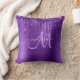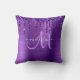 Girly Purple Dripping Glitter Brush Metal Monogram Cushion
