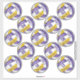 This set of 13 team colours volleyball stickers (each approximately 3 inches) features volleyballs with purple, gold and white panels (the purple and gold panels are blended with an artsy, girly floral pattern) - customise each sticker with a player's name & jersey number plus school or club name and mascot name - economically priced at a little more than $1 per 3" sticker - by katz_d_zynes