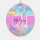 Girly Rainbow Holographic Iridescent Monogram Name Ceramic Ornament