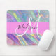 Girly Rainbow Holographic Iridescent Monogram Name Mouse Pad
