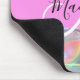 Girly rainbow holographic iridescent monogram name and initial mouse pad. Your custom name and monogram are written in an elegant hand lettered script with a pink background. A perfect birthday or Christmas gift!