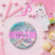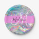 Girly Rainbow Holographic Iridescent Monogram Name Paper Plate