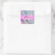 Girly rainbow holographic iridescent monogram name and initial square sticker. Your custom name and monogram are written in an elegant hand lettered script with a pink background. A perfect birthday or Christmas gift!