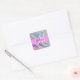 Girly Rainbow Holographic Iridescent Monogram Name Square Sticker