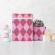 This girly wrapping paper features a cute argyle pattern with raspberry and pink diamonds and very light pink dotted lines.