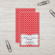 Cute girly business cards. Solid red background colour and white polka dots. Elegant bracket frame that contains your name and contact information.