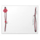 Continue the art of handwriting notes when you sent a message on send this 11" x 8.5" personalised red Gerber daisy with black and red flourish bottom border and black and red filigree top border stationery. Fill in the template fields with your information, remove that text or edit using the design tool to select font, style and size your prefer.