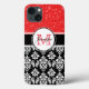 Girly, Red, Glitter Black Damask Personalised Case-Mate iPhone Case