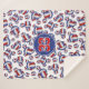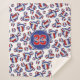 This sporty volleyball sherpa fleece blanket features a randomly arranged pattern of red, white and blue volleyballs in varying sizes turned every which way on a white background - the red and blue volleyball panels are blended with an artsy, girly floral pattern - player name and jersey number are customisable - by katz_d_zynes