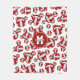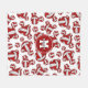 This girly volleyball team colours fleece blanket features a pattern of varied size stylised red and white volleyballs turned every which way - the red volleyball panels are blended with an artsy, girly floral pattern - customise with athlete's name and monogram or jersey number - by katz_d_zynes