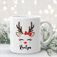 Girly Reindeer Face Red Bow Custom Name Coffee Mug