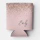 Girly Rose Gold Blush Pink Glitter Monogram Can Cooler