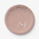 Girly Rose Gold - Blush Pink Glitter Monogram Paper Plate