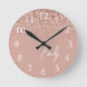 Girly Rose Gold Blush Pink Glitter Monogram Round Clock