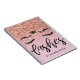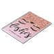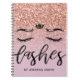 Modern trendy rose gold glitter lashes notebook. Design featuring brushed calligraphy script ''lashes'' on rose gold background. Perfect for your lashes business.