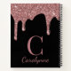 Girly Rose Gold Glitter Drips Monogram on Black Notebook