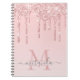 Modern, girly rose gold glitter drips on pink white ombre background spiral notebook. This design features blush pink rose gold sparkle glitter drips on light pink white ombre background with name and monogram text template. The name is written with a beautiful swirly hand lettered style script. Perfect feminine gift for pink lover girly girls. If you need help or matching items, please contact to me.