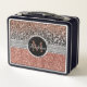 Girly Rose Gold Glitter Leopard Monogram Metal Lunch Box