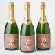 Girly Rose Gold Glitter Monogrammed sparkling wine Labels