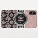 Girly faux rose gold, blush pink glitter and black damask pattern. Personalise with your name and monogram design. Elke Clarke© Girly, elegant, rose gold, blush pink glitter damask pattern design with black floral damask pattern. Rose gold, blush pink glitter solid colour block. Add your name in a script font and monogram on a black label decorated with sparkling diamonds. Note: diamonds and glitter are a printed photo effect! The font colours can be customised by clicking on the "Customise it" button for the editing tools. Perfect monogrammed gift for a stylish girly girl.