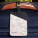 Girly Rose Gold Marble Abstract Monogram Luggage Tag