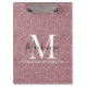 Girly Rose Gold Pink Glitter Monogram Name Clipboard