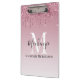 Girly Rose Gold Pink Glitter Monogram Name Clipboard