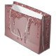 Girly Rose Gold Sparkle Glitter Drips Monogram Large Gift Bag with fashion faux blush pink/rose gold glitter drips on a chic background with your custom monogram and name. Great for your birthday, bachelorette party, or just for anyone who loves the luxury glam lifestyle. Perfect for your luxury aesthetic! Please contact us at cedarandstring@gmail.com if you need assistance with the design or matching products.