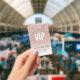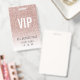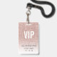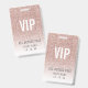 Template Girly Rose Pink Glitter Female VIP Access Event Badge. Replace with your event name and date. Use this photo or replace with your own.