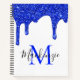 Girly Royal Blue Sparkle Glitter Drips Monogram Notebook