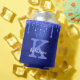 Girly Sapphire Blue Glitter Drips Monogram Name Can Cooler