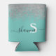 Girly Silver and Teal Monogram Aqua Sparkle Can Cooler