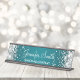 Girly Silver Glitter Dark Turquoise Gradient Desk Name Plate