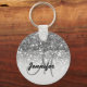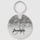 Girly Silver Glitter Sparkles Monogram Name Key Ring