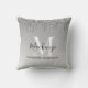 Girly Silver Grey Glitter Monogram Name Throw Pillow