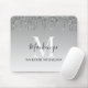 Girly Silver Grey Glitter Monogram Name Mouse Pad