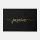 Girly Feminine Minimalist Simple Clean Black and Gold Monogram Name Signature Script Custom Personalised Doormat. This design featuring your first name in a pretty hand lettered style swash tail font signature typography (or calligraphy) in gold on black background. Great stylish feminine housewarming gift, also for birthday, anniversary, wedding, bridal shower, bachelorette party and It’s for the girl wholikes clean minimalist things.