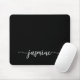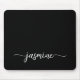 Elegant Girly Black Simple Minimalist Monogram Name Signature Script Custom Personalised mousepad. These design featuring your first name in a pretty hand lettered style swash tail font typography in white on black background. These are easy to customise. Great stylish feminine gift for birthday, mother’s day, bridal shower, sweet 16 birthday and and It’s for the girl who loves unique minimal stylish things.