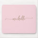 Girly Blush Pink Simple Minimalist Gold Monogram Name Signature Script Custom Personalised mousepad. These design featuring your first name in a pretty hand lettered style swash tail font typography script in gold colour on light baby pink or blush pink colour background. These are easy to customise. Great stylish feminine gift for birthday, mother’s day, bridal shower, sweet 16 birthday and and It’s for the girl who loves unique minimal stylish things.
