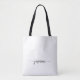 Elegant Modern Minimalist Clean White Feminine Girly Monogram Name Signature Script Custom Personalised Tote Bag. This design featuring your first name in a pretty hand lettered style swash tail font signature typography (or calligraphy) in black colour on white background. Great feminine gift for birthday, Christmas, wedding, sweet 16 birthday party, bridal shower, bachelorette party or for graduation and It’s for the girl who likes clean minimalist style things.