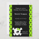 White skull birthday invitations with a skull and cross bone graphic. Lime and black dotted background that matches skull's green bow. Customise with your party details.