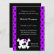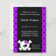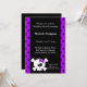 White skull birthday invitations with a skull and cross bone graphic.Purple and black dotted background that matches skull's purple bow. Customise with your party details.delightfuldoodles