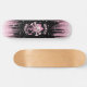 Cute pink skull and crossbones with polka dot bow and hearts is a girly design for skateboards.