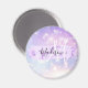 Girly and cute magnet with a colourful pink, purple, lilac and blue unicorn rainbow hearts sparkly background. Your custom name and monogram are written in an elegant hand lettered script with a lilac purple unicorn paint brush strokes stripe background. A perfect birthday or Christmas gift!