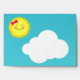 Add a happy dose of sunshine to your correspondence with the Girly Sunshine Envelope designed by Enchantfancy Design Company. This design features a smiling sun wearing a pretty pink hair bow on a blue sky background. The front of the envelope has space on a fluffy white cloud where you can write your recipients mailing address. Meanwhile, the back of the envelope has a smaller cloud with customisable return address text. A pattern of suns on a pink background accents the inside. It coordinates with our Sunshine Birthday Party Invitation.