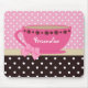 Girly Teacup Pink and Brown Polka Dot Bow and Name Mouse Pad